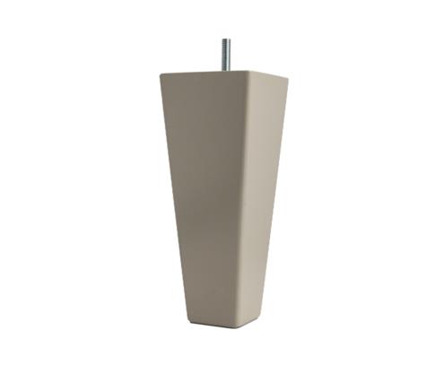 A square shaped wooden leg crafted in solid wood. The leg bas has a metal base finish for the finer look.