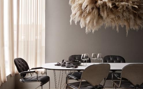 A beautiful and clean, extendable dining table.