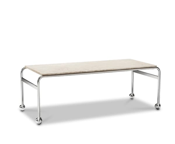 Based on Bruno Mathsson’s original table, designed to accompany his classic chair, this option provides the largest amount of surface space, but with the same elegant aesthetics of the Karin collection. The chrome-plated frame is topped in exclusive marble or walnut.